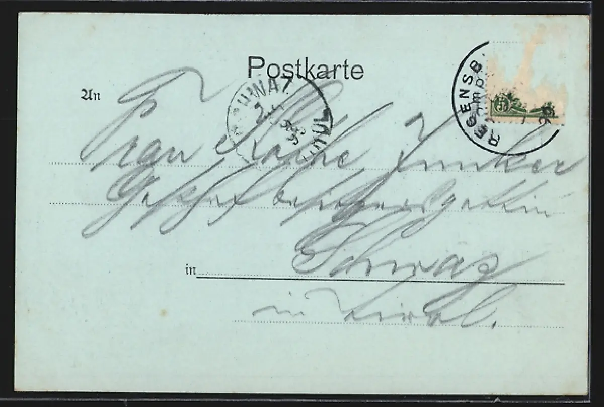 alte Ansichtskarte, gelaufen, Briefmarke entfernt, guter Zustand
