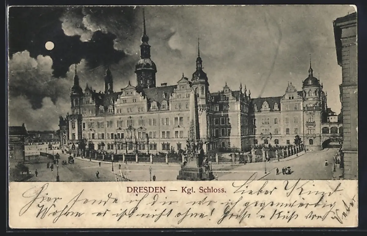 Mondschein-AK Dresden, Kgl. Schloss im Vollmondlicht