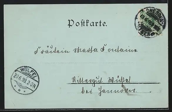 alte Ansichtskarte, gelaufen 1898, Eckknick re. unten, Stempelspur, guter Zustand