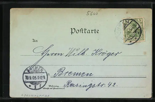 alte Ansichtskarte, gelaufen 1905, guter Zustand