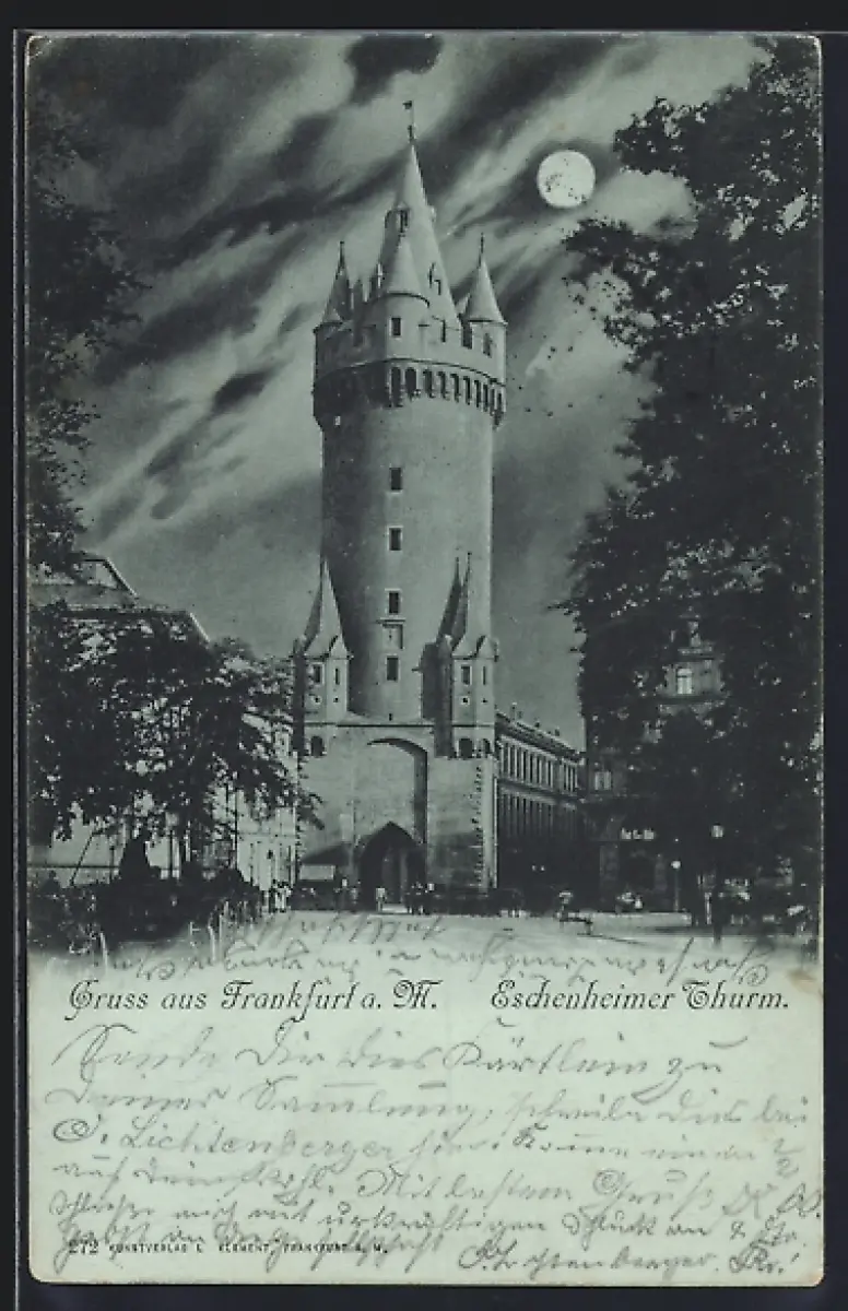 Mondschein-AK Frankfurt a. M., Eschenheimer Turm