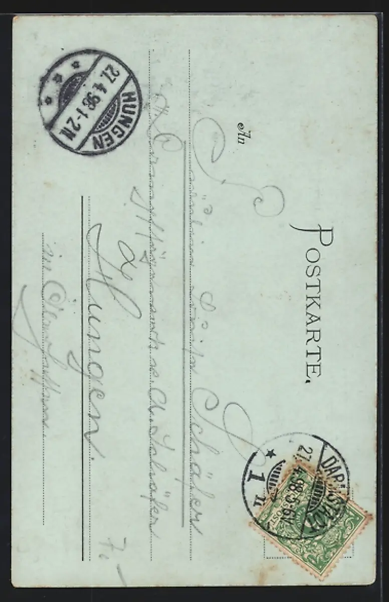 alte Ansichtskarte, gelaufen 1898, Eckknick li. oben, guter Zustand