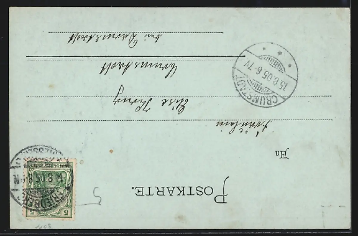 alte Ansichtskarte, gelaufen 1905, Eckknick rechts unten, guter Zustand