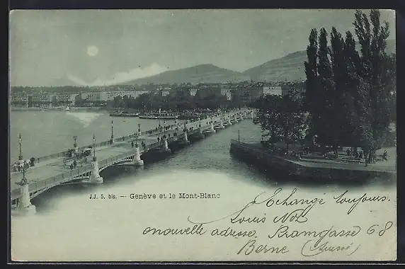 Mondschein-AK Genève, Genève et le Mont-Blanc