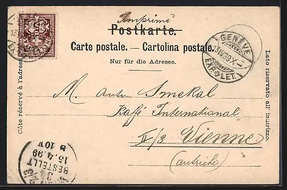 gelaufen 1899, Eckknick unten re., guter Zustand