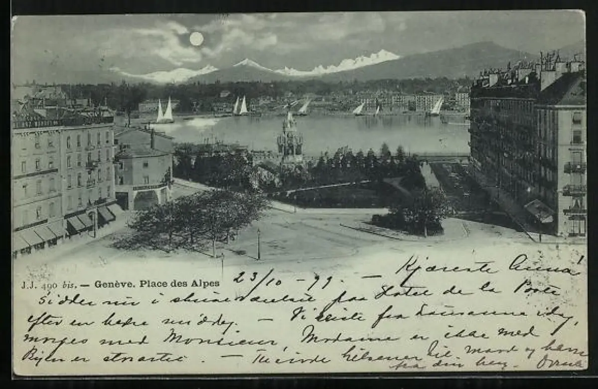 Mondschein-AK Genève, Place des Alpes