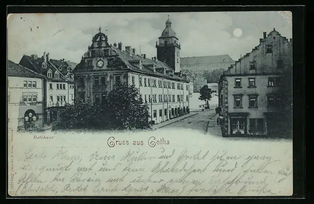 Mondschein-AK Gotha, am historischen Rathaus