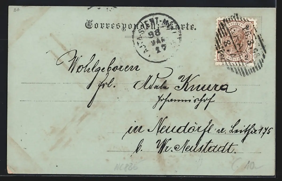 gelaufen 1898, Eckknick re. unten, guter Zustand