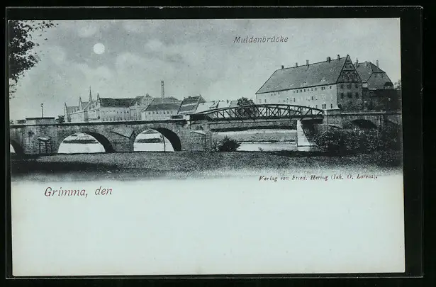 Mondschein-AK Grimma, Partie an der Muldenbrücke