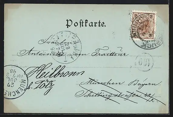 alte Ansichtskarte, gelaufen 1898, Albumspuren, rechte Kante beschnitten