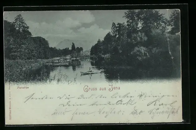 Mondschein-AK Jena, Paradies, Seepartie mit Ruderboot