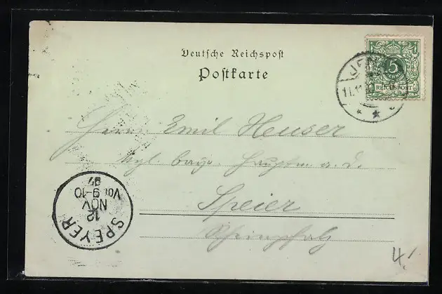 alte Ansichtskarte, gelaufen 1897, Eckknick oben rechts, Einriss rechts, guter Zustand