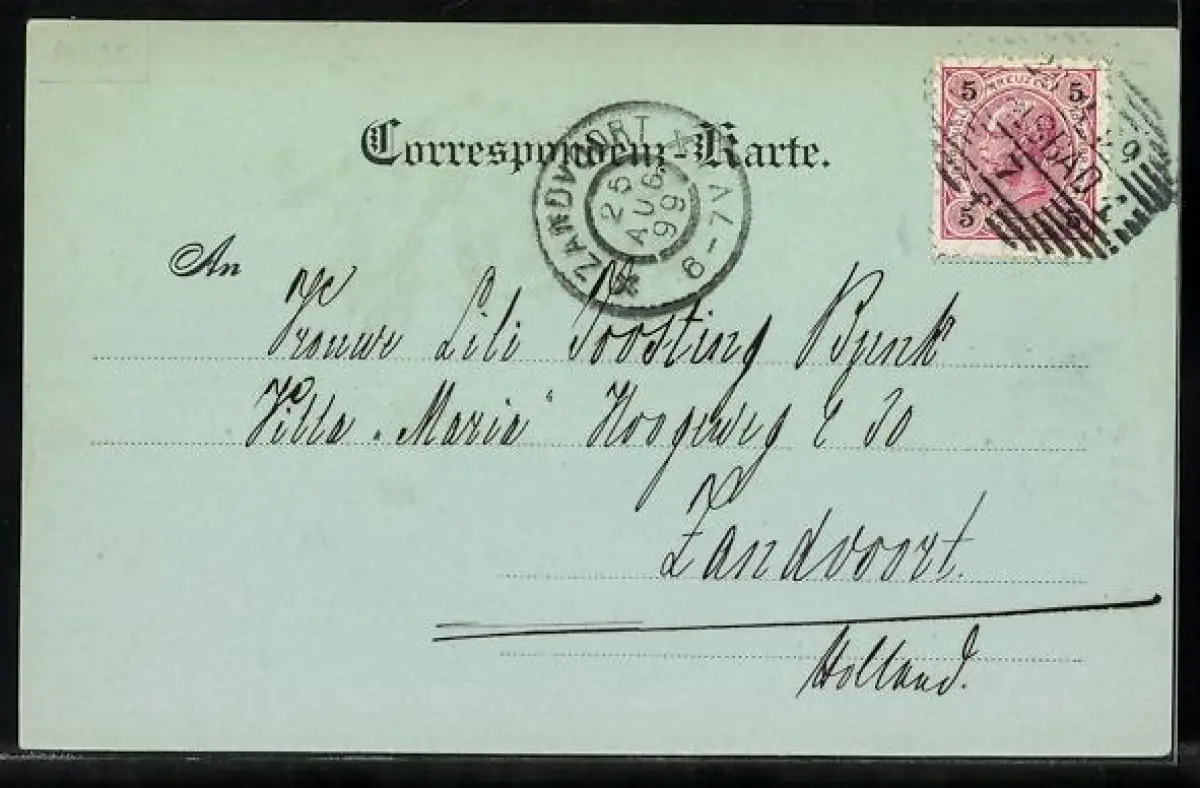 gelaufen 1899, kleiner Eckknick links oben, guter Zustand