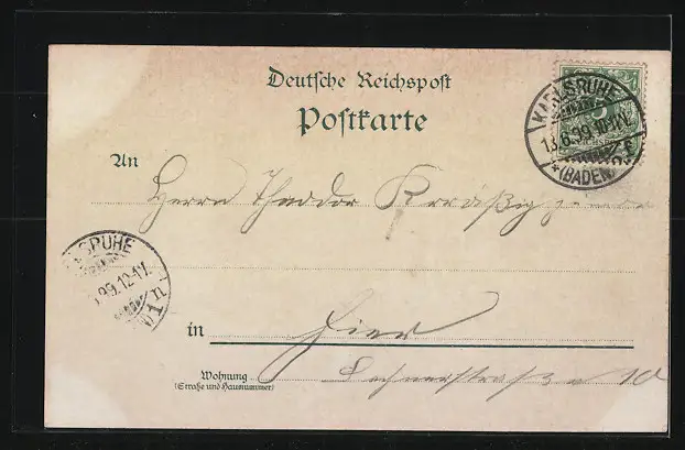 alte Ansichtskarte, gelaufen 1899, guter Zustand