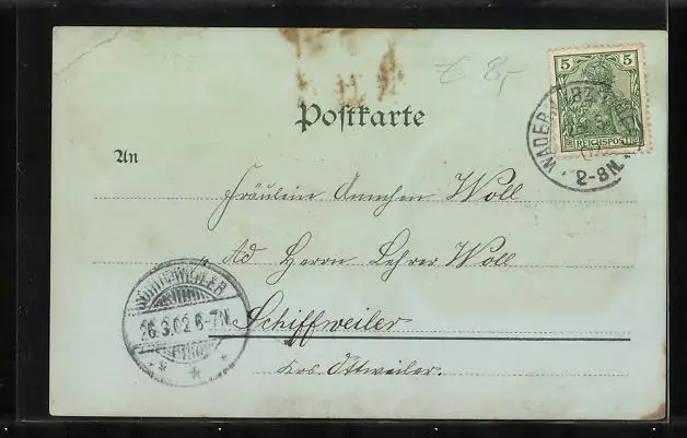 alte Ansichtskarte, gelaufen 1902, Eckknick re. oben, guter Zustand