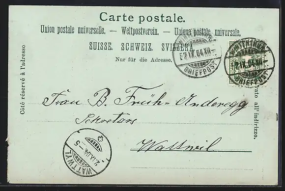 alte Ansichtskarte, gelaufen 1904, Rand- u. Eckschaden re. unten, Stempelspur, guter Zustand