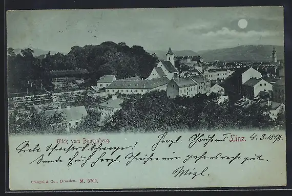Mondschein-AK Linz, Teilansicht vom Bauernberg