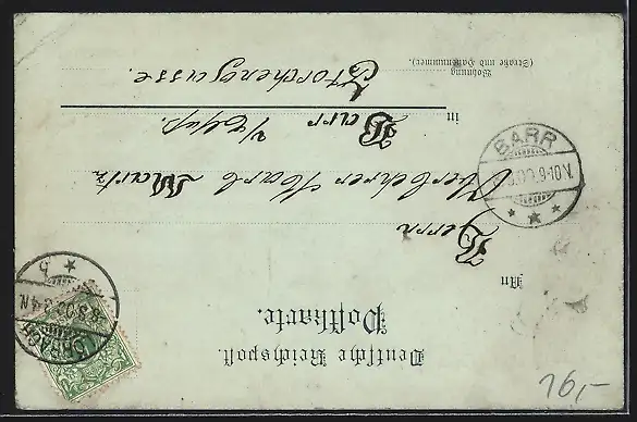 alte Ansichtskarte, gelaufen 1900, Eckknick re. oben, guter Zustand