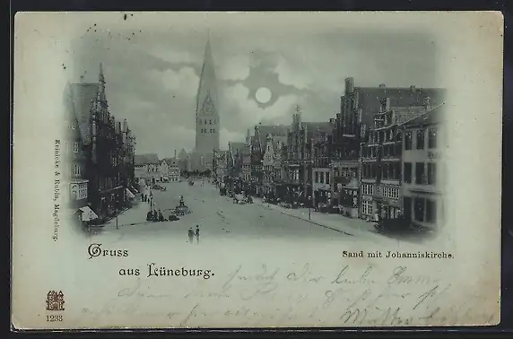 Mondschein-AK Lüneburg, Sand mit Johanniskirche