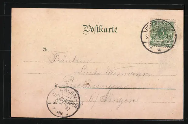 alte Ansichtskarte, gelaufen 1900, guter Zustand