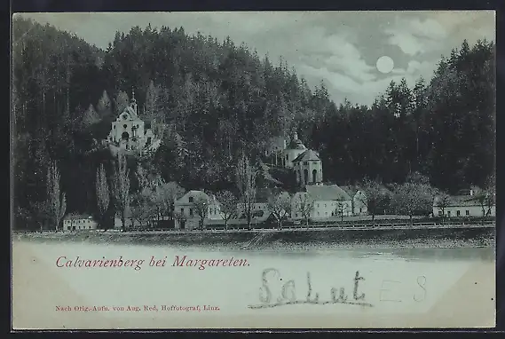 Mondschein-AK Margareten, Calvarienberg mit Kirche