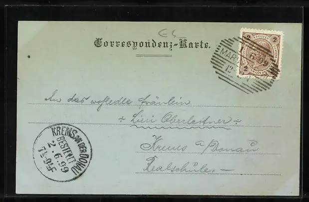 alte Ansichtskarte, gelaufen 1899, guter Zustand