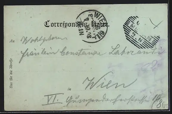 gelaufen 1908, Eckknick li. unten, Briefmarke entfernt, guter Zustand