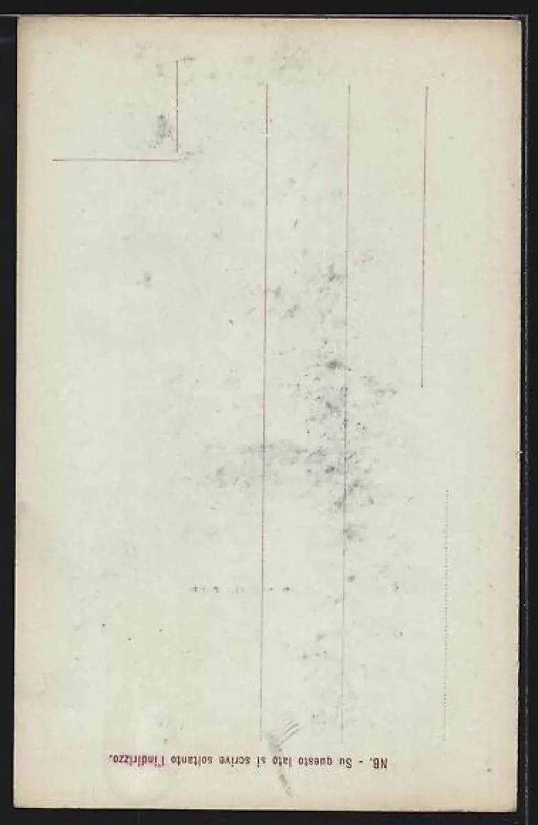 Personenbezogene Daten auf der Rückseite der Karte wurden durch blauen Textmarker unkenntlich gemacht. Die blauen Stellen sind auf die Vorderseite durchgeweicht und wirken sich negativ auf das Postkartenfoto aus