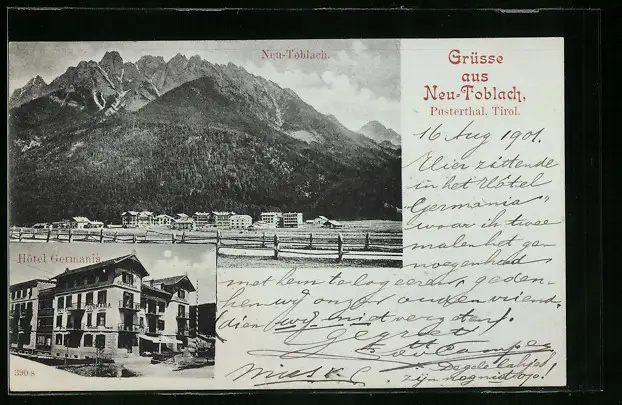 Mondschein-AK Neu-Toblach /Pusterthal, Hotel Germania, Ortsansicht