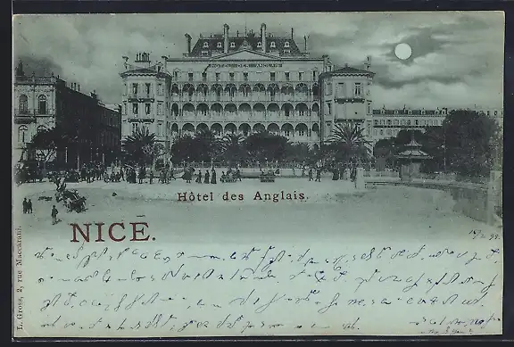 Mondschein-AK Nice, Hôtel des Anglais avec vue sur la promenade et la plage