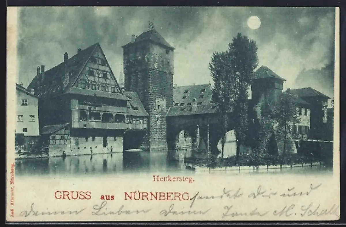 Mondschein-AK Nürnberg, Henkersteg bei Nacht