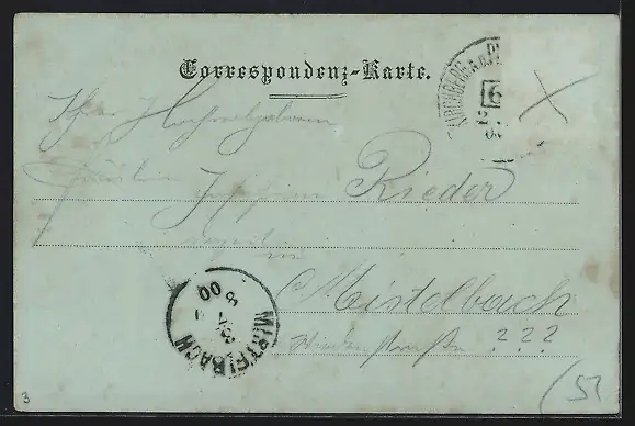 alte Ansichtskarte, gelaufen 1900, Briefmarke entfernt, rückseitig Oberflächenschaden, guter Zustand