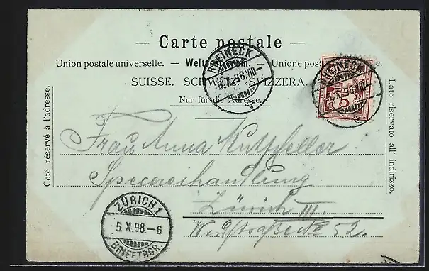 gelaufen 1898, Eckknick unten re., Stempelspur, guter Zustand