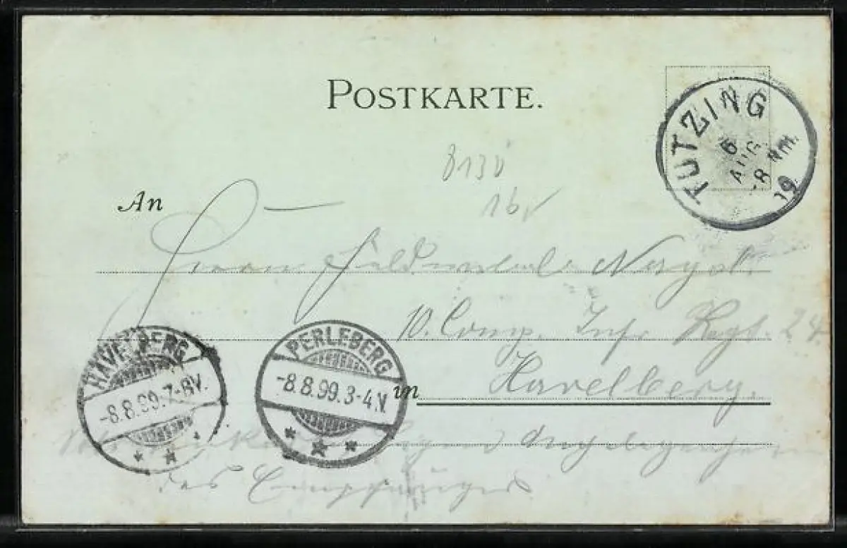 alte Ansichtskarte, gelaufen 1899, Eckknicke links u. rechts, guter Zustand