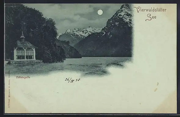 Mondschein-AK Sisikon /Vierwaldstätter See, Tellskapelle