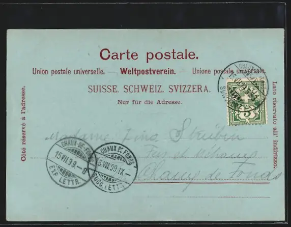 alte Ansichtskarte, gelaufen 1899, Einriss unten re., guter Zustand