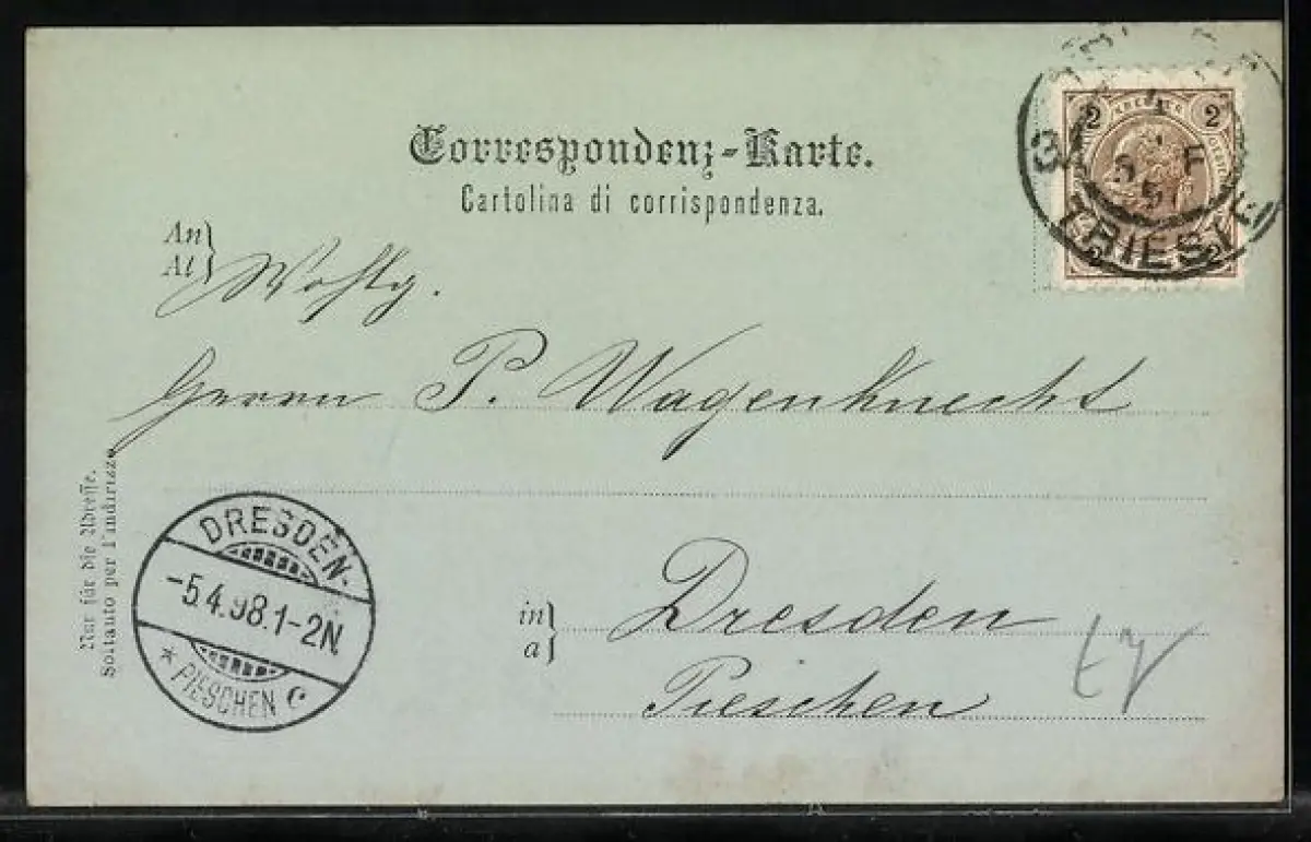 alte Ansichtskarte, gelaufen 1898, guter Zustand
