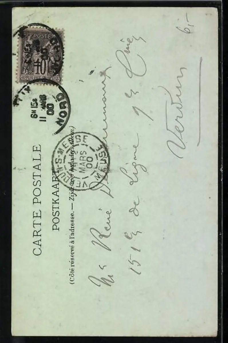 alte Ansichtskarte, gelaufen 1900, Eckknicke re. oben, Stempelspur, guter Zustand