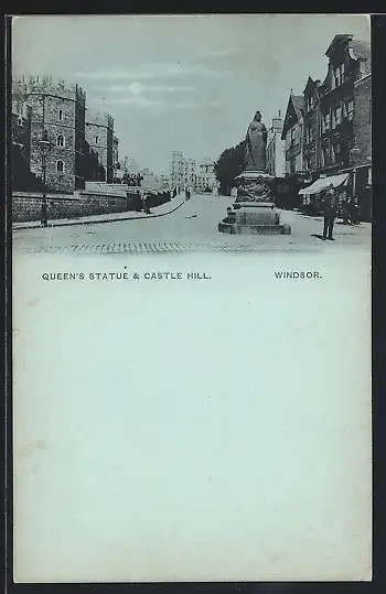 Mondschein-AK Windsor, Queen`s Statue and Castle Hill