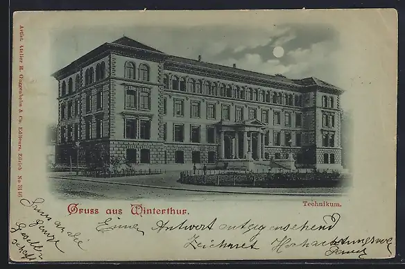 Mondschein-AK Winterthur, Blick auf das Technikum