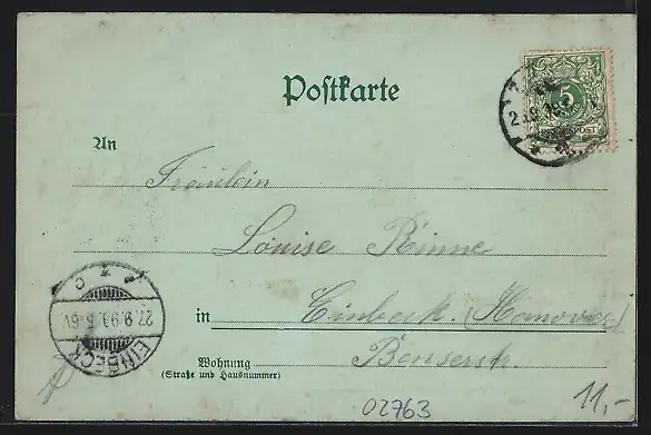 alte Ansichtskarte, gelaufen 1899, Stempelspur, guter Zustand