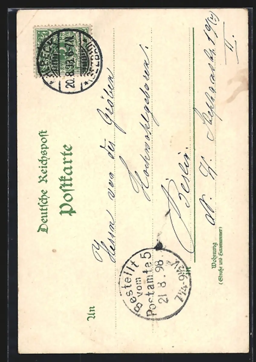 gelaufen 1898, Eckknick re. oben, guter Zustand