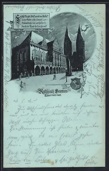 Mondschein-Lithographie Bremen, Rathaus mit Denkmal