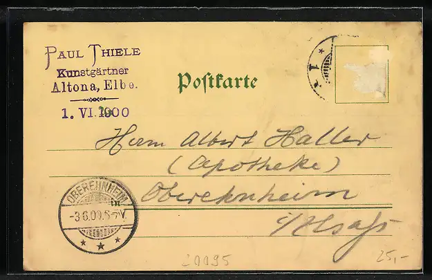 gelaufen 1900, Briefmarke entfernt, guter Zustand
