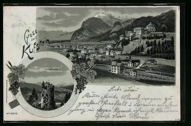 Mondschein-Lithographie Kufstein, Totalansicht mit Teufelskanzel