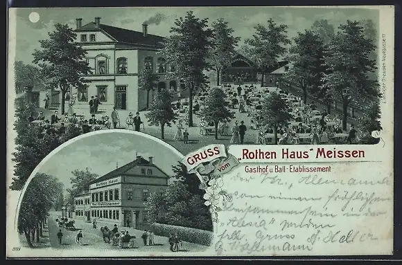 Mondschein-Lithographie Meissen / Elbe, Gasthof - Etablissement Rothes Haus