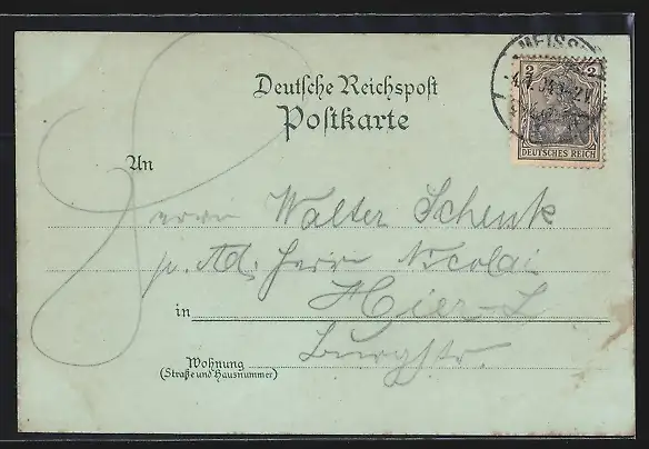 gelaufen 1904, Bugspuren li. unten, guter Zustand