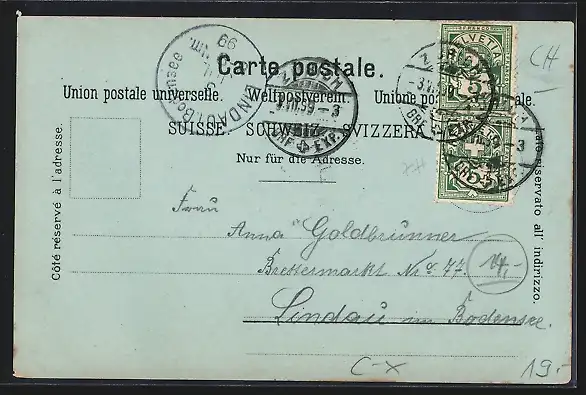 gelaufen 1899, kleiner Einriss li. oben, guter Zustand