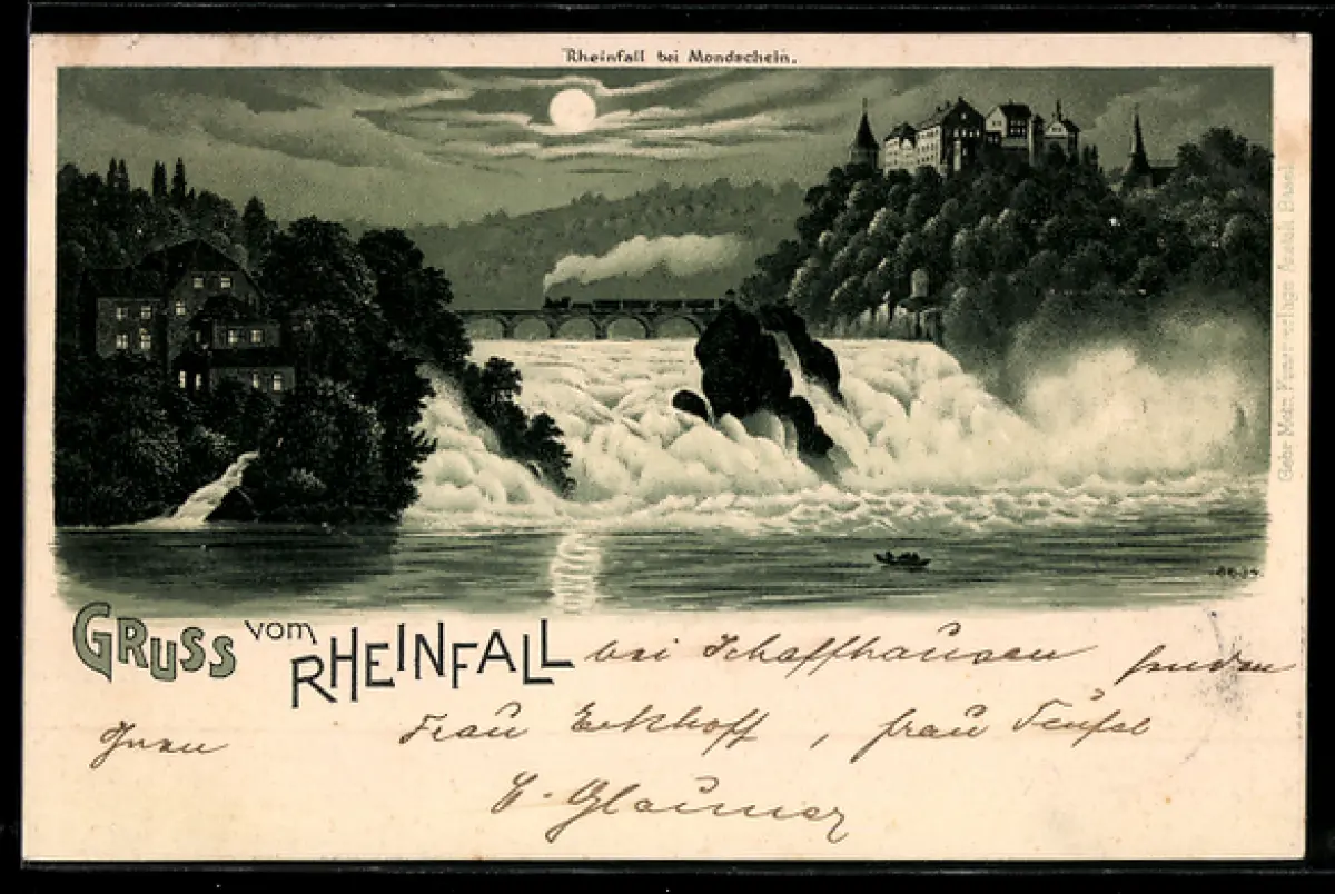 Mondschein-Lithographie Rheinfall, Rheinfall bei Vollmond