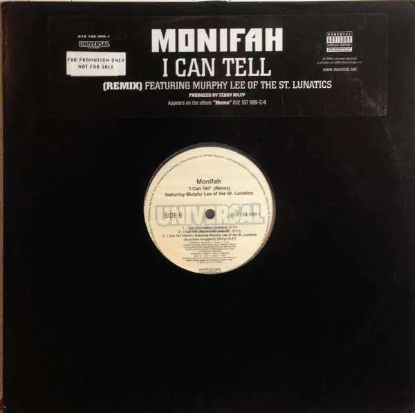 12" Maxi Monifah - I Can Tell Remix feat. Murphy Lee, neutrales Cover mit Info-Aufkleber; Teddy Riley, Zustand Platte VG+ Hülle VG; Made in United States 2000 Universal 012 158 099-1, Tracks Remix Radio, Remix, Instr., Remix, Extended Dirty, Album, Album Instr., Remix, Extended Acappella